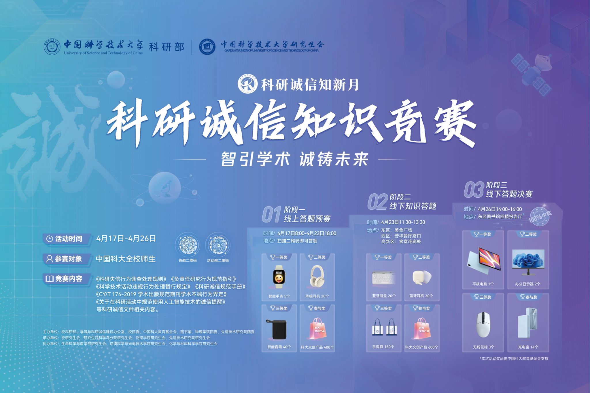 为了进一步巩固我校良好的学术氛围,加强广大师生对学术诚信和科技伦理的认识和理解,科研部、学风与科研诚信建设办公室联合校团委、教育基金会、图书馆等单位举办科研诚信知识竞赛系列活动。